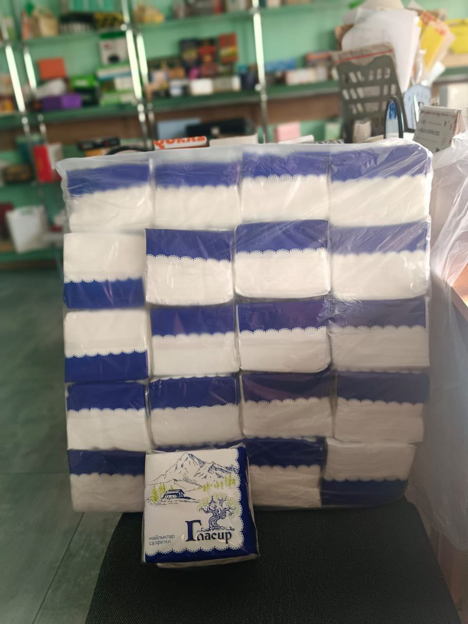 - салфетки для диспенсера двухслойные, размер 21х20 см., в пачке 120 штук, в упаковке 14 пачек - по 294 тг.